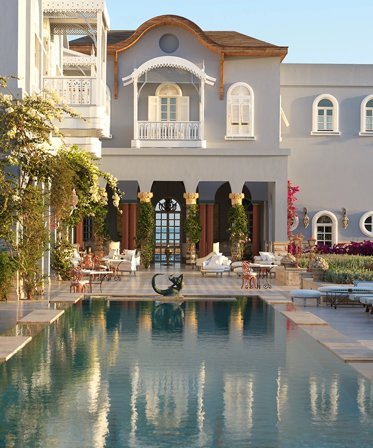 Nestled along the Red Sea coast, this adults only luxury mansion presented by award winning designer Amr Khalil takes you on a whimsical ride featuring sensational spa services, decadent dining experiences in the dreamiest setting amidst swirls of engraved marble and gorgeous powder blue and lush green tones. Relax by the palatial pool and enjoy the most serene views of the Red Sea beyond or indulge like a royal in your luxury suite.