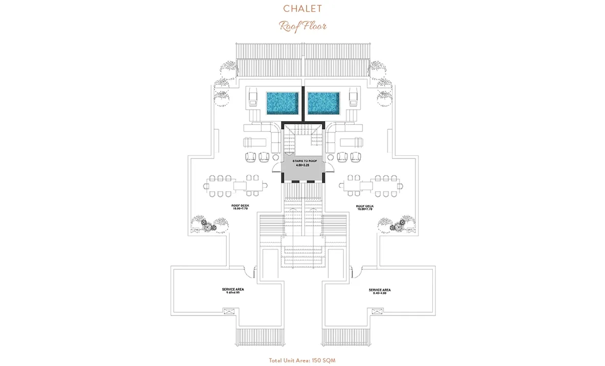 Nestled amidst breathtaking vistas, each three-bedroom chalet offers 150m² of exquisite living space. Each chalet’s ground floor features a gracious living and dining area leading onto a private garden, providing a peaceful oasis. The first floor also hosts a spectacular rooftop deck and private plunge pool with uninterrupted views of the mountains and the mesmerising Red Sea.