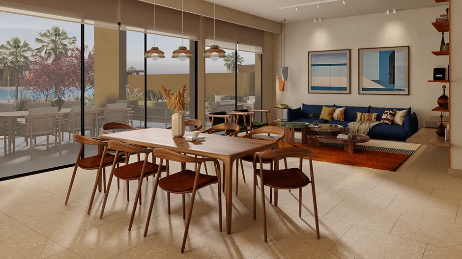 A clever open-plan layout merges inside and out at this 245m² villa in North Bay. It brings a sense of nature to the living, dining, and communal spaces while ensuring the utmost privacy. Residents can enjoy a private garden, sky terraces and captivating views from the roof terraces. An optional swimming pool offers added luxury.