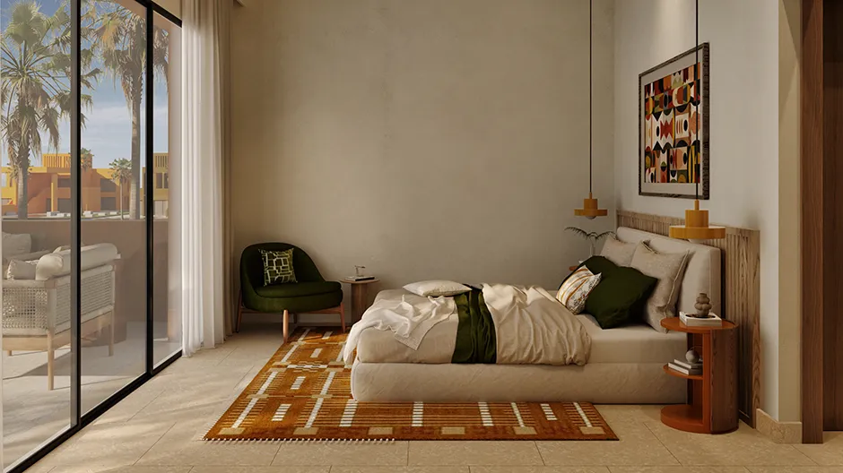With 207m² of space, this peaceful haven merges indoors and out and is filled with soft, natural light. The open living and dining areas create an elegant, relaxed ambience, while outside covered and open sky terraces and a private, meditative garden add to the sense of seclusion. Buyers can add a bespoke swimming pool for a playful, carefree element.