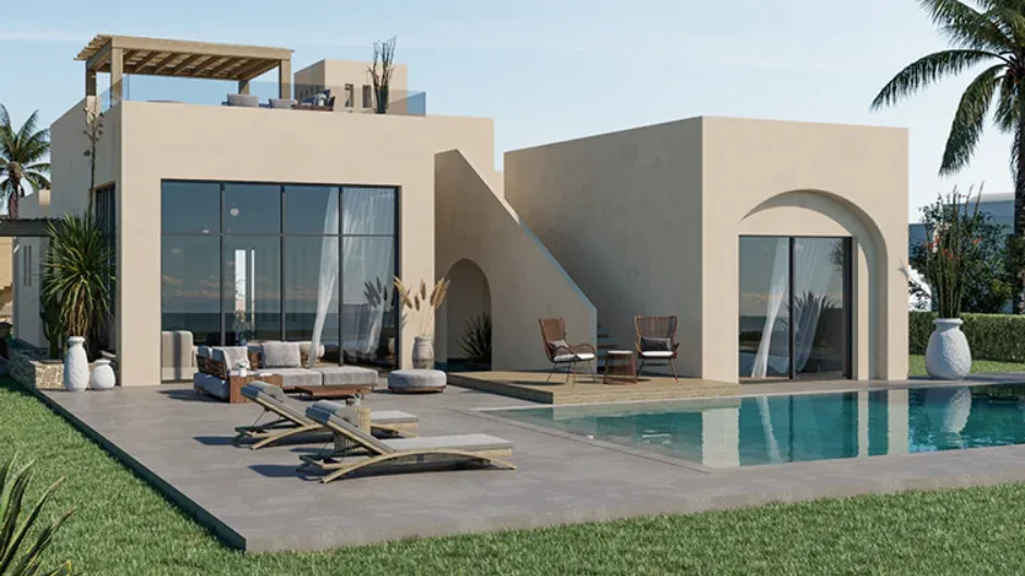 Discover unmatched elegance in this 175m² one-storey villa in El Gouna. A tranquil outdoor paradise includes a private garden and pool, providing a serene retreat. Explore the option of incorporating a driver’s room with a bathroom into the villa’s design for tailored accommodation to meet your household needs.
