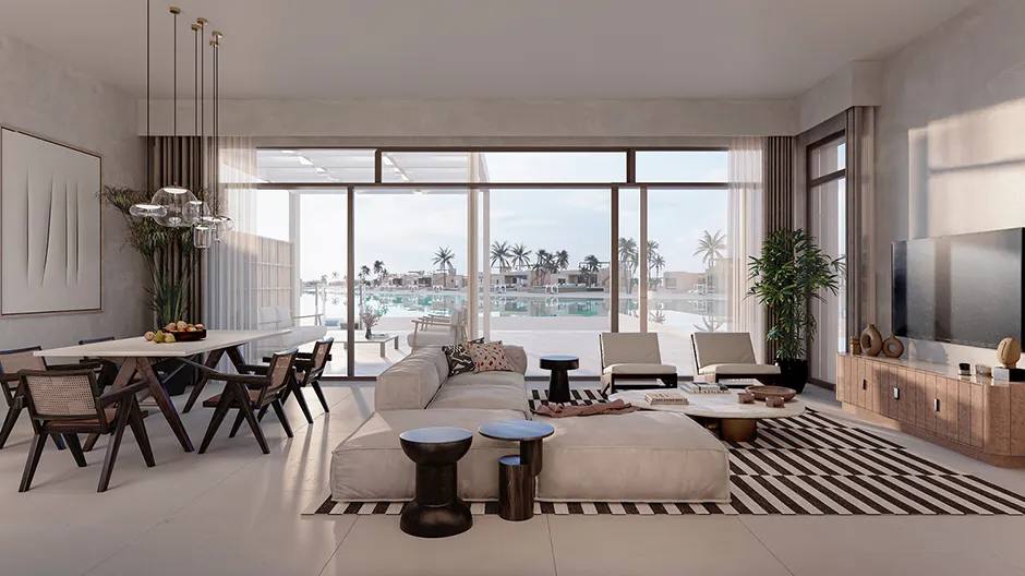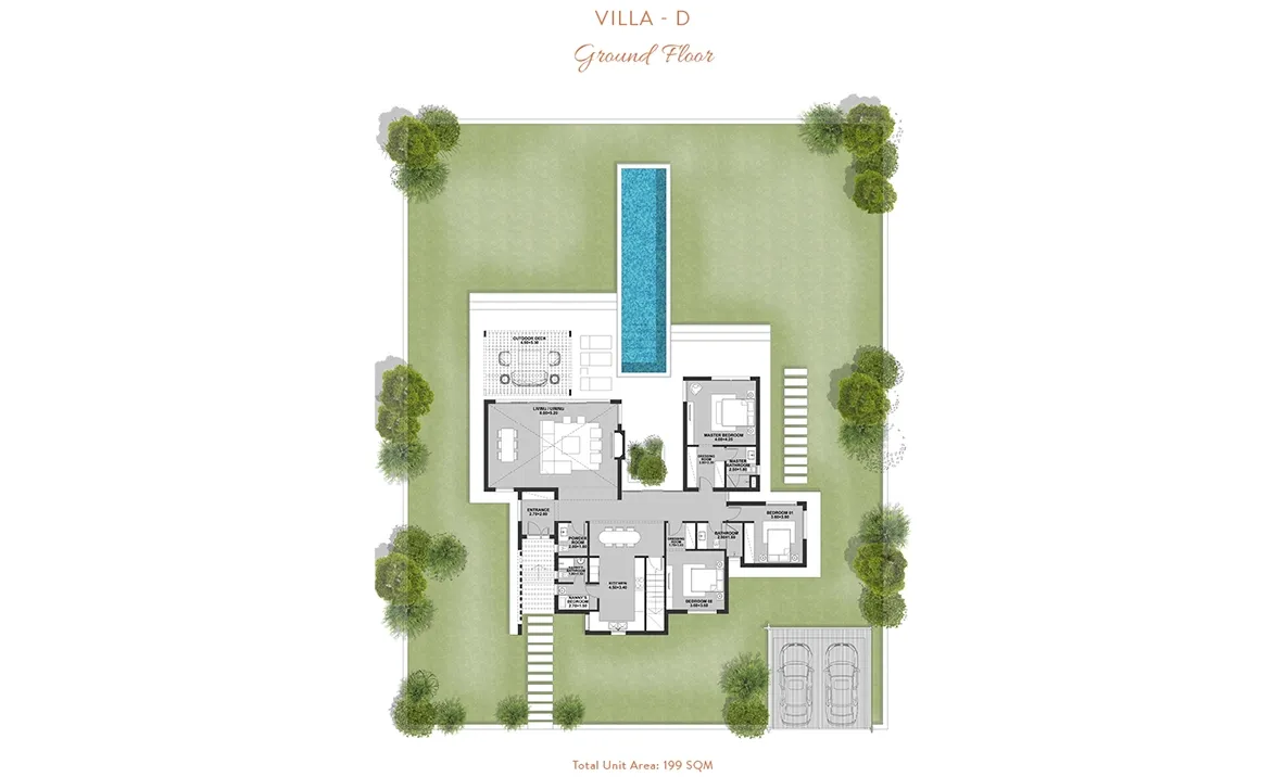 Experience comfort and luxury in this single-story, three-bedroom villa spanning 199m². The wide kitchen seamlessly flows into an open living area, ideal for family gatherings. A perfect sundeck and pool offer relaxation. The villa features a terrace with sweeping views, and upstairs, the master bedroom opens to a wide roof terrace with panoramic views, creating a welcoming and serene atmosphere.