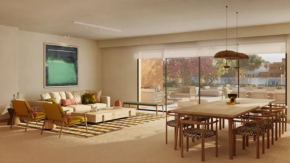 This two-story, 390m² home provides generous bedrooms plus a master suite, each designed for relaxation. Featuring ensuite bathrooms and ample storage, the spaces are practical but luxurious, and the master suite includes a private terrace with stunning views. This sanctuary of calm also offers convenience with a staff bedroom, home office, laundry, utility room, and cloakroom.