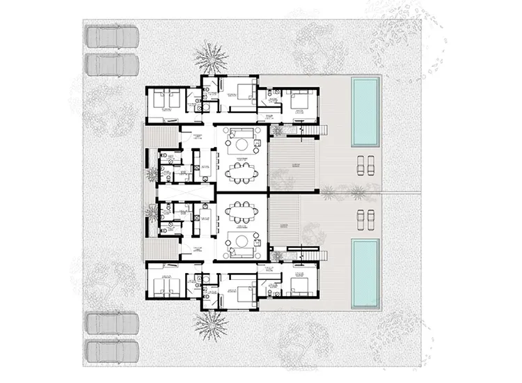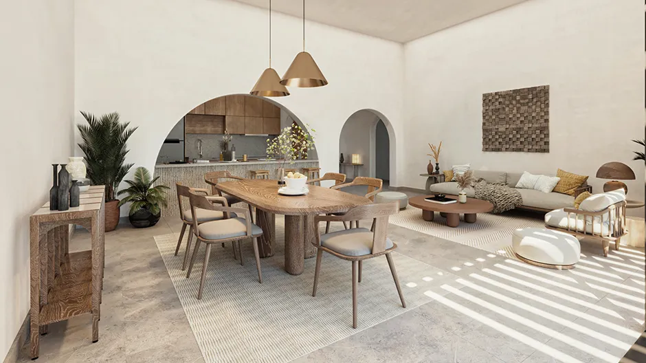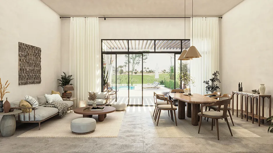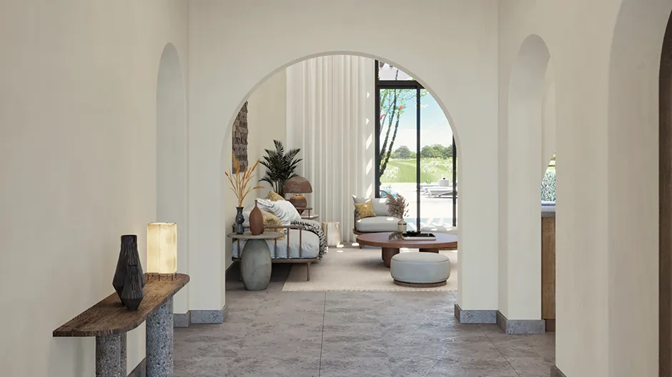 Nestled amidst panoramic views of Ancient Sands Golf Course, The Twin Villas comprise three generously appointed bedrooms, a spacious walk-in dressing room and a dedicated nanny’s room. Spread over a single floor and covering 158m², these exclusive residences, with open-plan living layouts, seamlessly merge indoor and outdoor spaces, creating an atmosphere of unrestricted tranquillity.