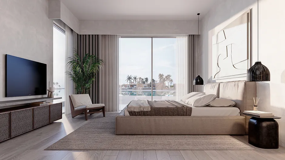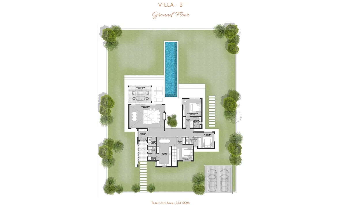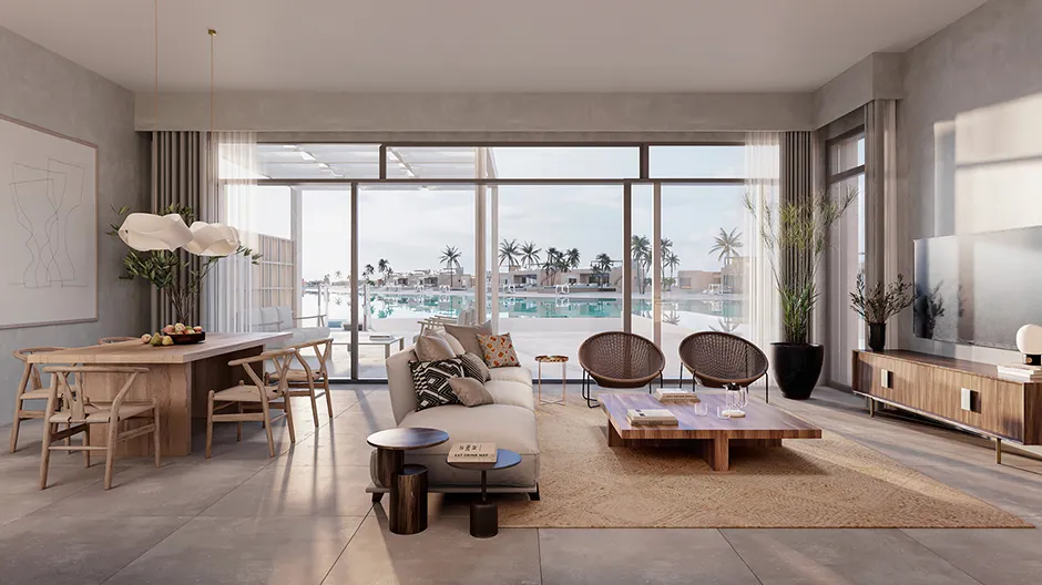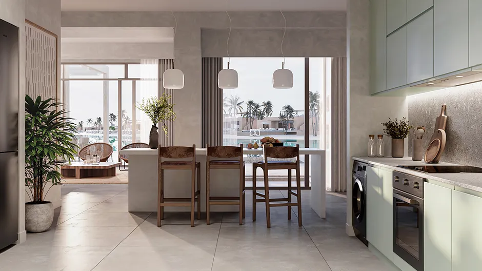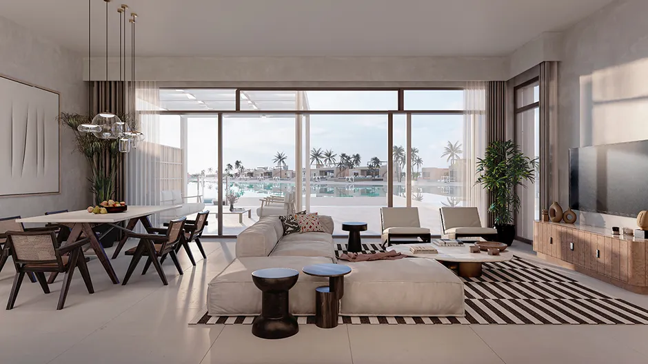 Discover elegant living with this beautiful two-storey 234m² four-bedroom villa. Its open-plan kitchen seamlessly flows into inviting dining and living areas. The master bedroom overlooks the garden and 30m² pool, offering a serene escape. Outside, a luxurious pool area and private outdoor space await. The rooftop deck ensures privacy and showcases breathtaking views of distant mountains and the Red Sea, creating a tranquil haven.